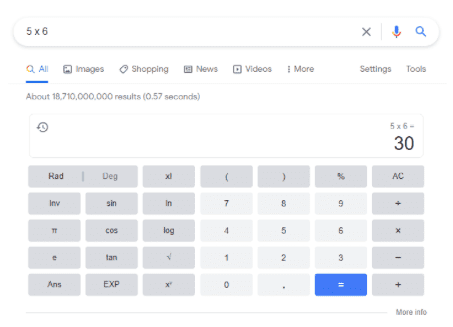 Have you ever searched Google for an online calculator? You can save a few clicks by trying the calculation you need in the Google search bar first.
