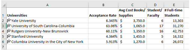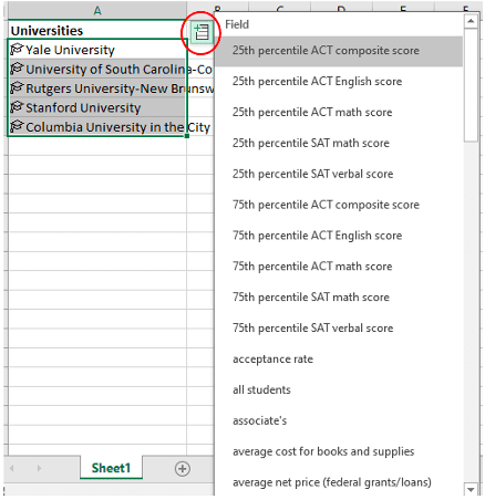 - Excel now attaches its university facts database to your data